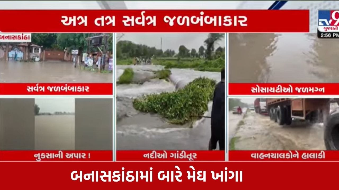 બનાસકાંઠામાં મેઘરાજાનું રૌદ્ર સ્વરૂપ, સતત વરસતા વરસાદને કારણે બારે મેઘ ખાંગા જેવી સ્થિતિ સર્જાઈ- Video