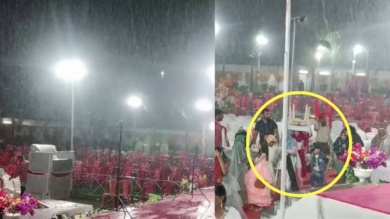 ભરૂચ – અંકલેશ્વરમાં પાર્ટી પ્લોટ પર લગ્ન સમારંભ દરમિયાન અચાનક મેઘરાજાએ એન્ટ્રી કરી હતી. અચાનક વાતાવરણમાં પલટા સાથે વરસાદ વરસતાં મહેમાનોએ દોડધામ કરી મૂકી હતી. આમતો કમોસમી વરસાદના બીજા રાઉન્ડની હવામાન વિભાગે આગાહી કરી જ હતી પણ દિવસ દરમિયાન વરસાદી માહોલ નજરે ન પડતાં ખુલ્લા પ્લોટ પાર લગ્ન સમારંભના આયોજન યથાવત રખાયા હતા પણ રાતે વરસાદ વિલન બન્યો હતો.