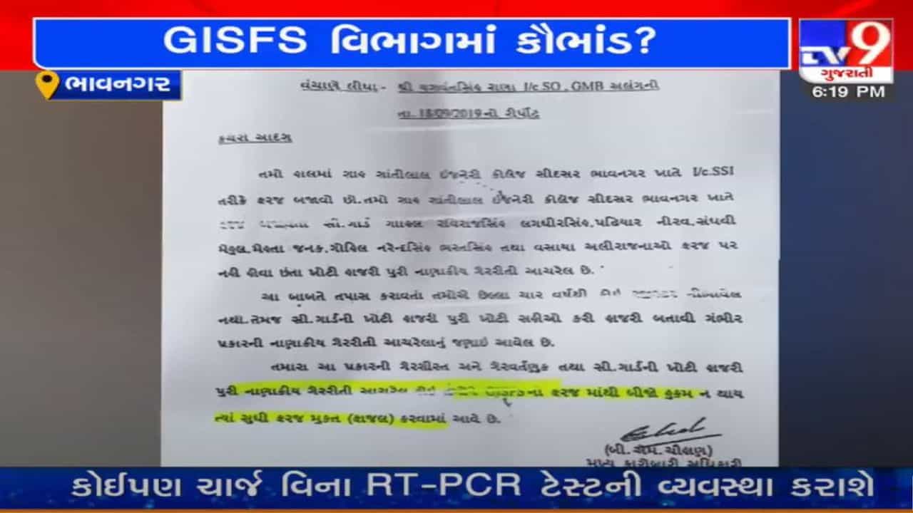 મહત્વનું છે કે, ભાવનગરના દલિત અધિકાર મંચના માવજી સરવૈયાનો આક્ષેપ છે કે, GISF વિભાગમાં થયેલી ભરતીમાં કૌભાંડ આચરવામાં આવ્યું હતું. સરવૈયાનો આક્ષેપ છે કે જે લોકોએ ક્યારેય હોમગાર્ડમાં ફરજ નથી બજાવી તેવા લોકોની પાછલા બારણેથી GISF વિભાગમાં ભરતી કરાઈ છે. ખોટા પ્રમાણપત્રો રજૂ કરીને GISF વિભાગમાં નોકરીઓ મેળવી છે. માવજી સરવૈયાએ 9 લોકો પર નામજોગ આરોપ લગાવી યોગ્ય તપાસની માગણી કરી.