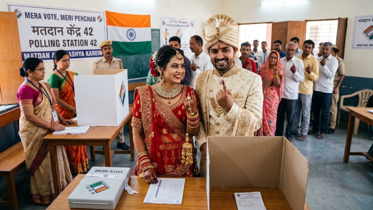 લગ્નના શણગારમાં સજી મતદાન કર્યું