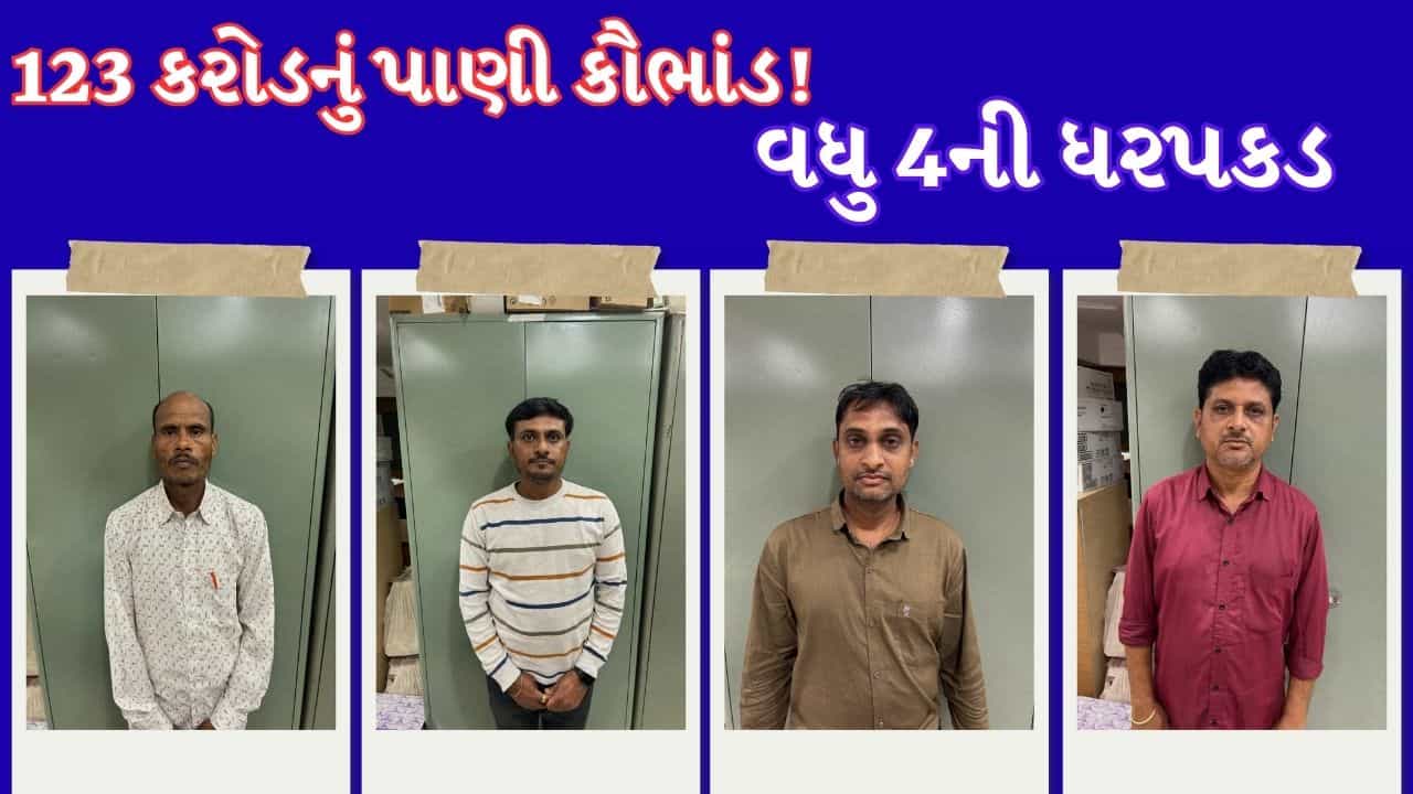 મહીસાગર જિલ્લામાં સામે આવેલા ₹123 કરોડના ‘નલ સે જલ યોજના’ કૌભાંડમાં CID ક્રાઈમ બ્રાન્ચને વધુ એક મોટી સફળતા મળી છે. WASMO ની મહીસાગર કચેરીમાં કાર્યરત ચાર કરાર આધારિત કર્મચારીઓની ધરપકડ કરવામાં આવી છે. ઝડપાયેલા કર્મચારીઓમાં ગીરીશકુમાર વાળંદ, જનાર્દન પટેલ, મહેન્દ્રકુમાર રાઠોડ અને નાથા ડામોરનો સમાવેશ થાય છે.