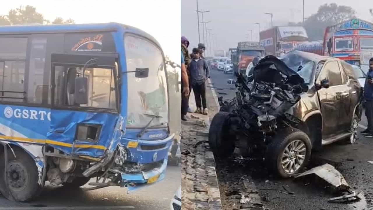 CCTV Breaking News : એસ જી હાઈવે વૈષ્ણોદેવી બ્રિજ ઉપર કાર એસટી વચ્ચે અકસ્માત, 1નુ મોત, યુવતી ગંભીર