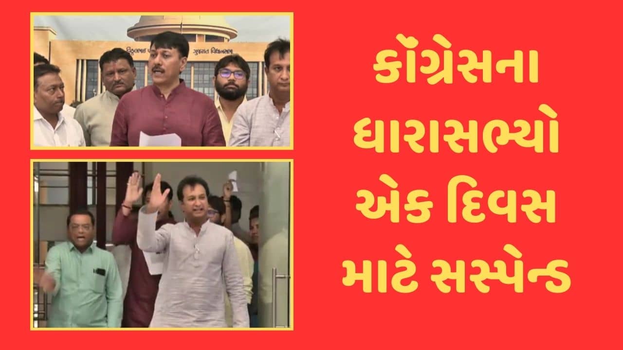 વિધાનસભા ગૃહમાં નકલી કચેરી કાંડ મુદ્દે કૉંગ્રેસે કર્યો વિરોધ, વોકઆઉટ કરતાં કૉંગ્રેસના ધારાસભ્યોને એક દિવસ માટે કરાયા સસ્પેન્ડ, જુઓ Video
