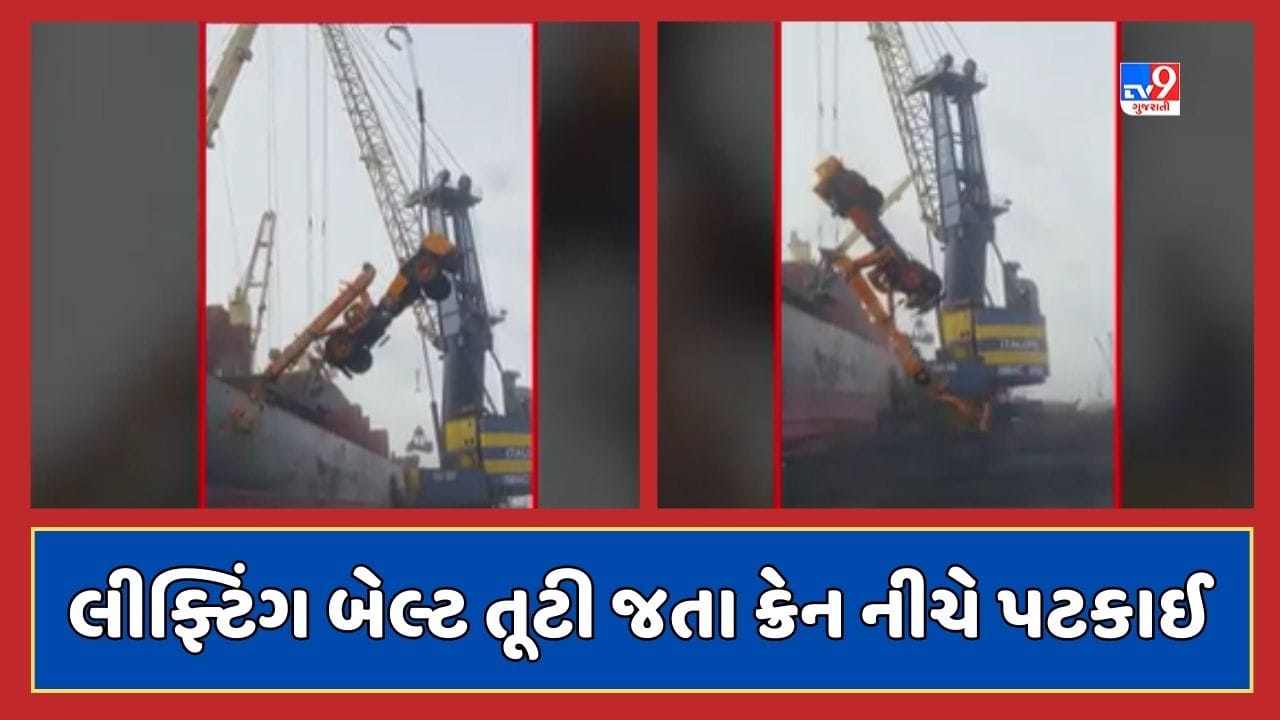 Kutch : કંડલા પોર્ટ પર લીફ્ટિંગ બેલ્ટ તૂટી જતા ક્રેન નીચે પટકાઈ, ડ્રાયવરનો આબાદ બચાવ, જૂઓ Video