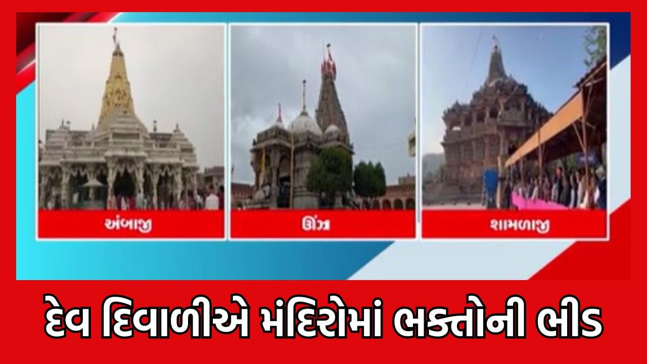 દેવ દિવાળીના પર્વે ગુજરાતના મોટા મંદિરોમાં લાખો ભક્તોએ શ્રદ્ધાપૂર્વક દર્શન કર્યા. યાત્રાધામ અંબાજીમાં હજારો ભક્તોએ દર્શન કર્યા. શ્રદ્ધાળુઓએ મંદિરના શિખર પર 52 ગજની ધ્વજા ચડાવી. જય અંબેના ઘોષથી મંદિર પરિસરમાં ભક્તિમય માહોલ સર્જાયો. ઊંઝા ઉમિયાધામમાં પણ દૂર-દૂરથી ભક્તોએ દર્શન કરીને ધન્યતા અનુભવી. અરવલ્લીના શામળાજીમાં કાર્તિકી પૂર્ણિમાએ મેળામાં ગુજરાત, રાજસ્થાનના ભક્તોએ મોટી સંખ્યામાં દર્શન કર્યા. ભગવાન શામળિયાને પૂર્ણિમા પર્વે ખાસ શણગાર કરાયો. નાગધરા કુંડમાં પિતૃમોક્ષની માન્યતા સાથે ભક્તોએ શ્રદ્ધાની ડૂબકી લગાવી.