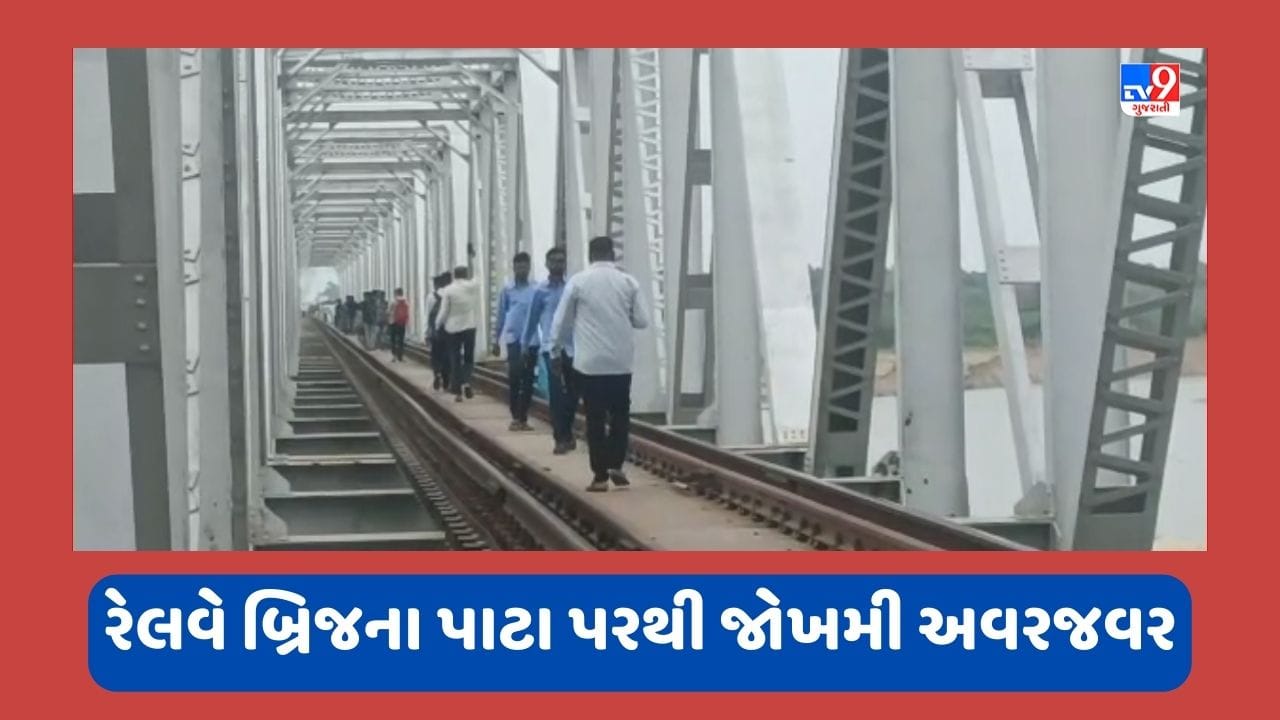 Banaskantha : બનાસ નદીનો ડાયવર્ઝન રસ્તો પાણીમાં ધોવાતા રેલવે બ્રિજના પાટા પરથી નાગરિકોની જોખમી અવરજવર, જુઓ Video