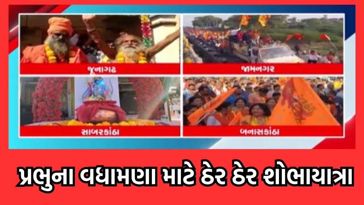 અયોધ્યામાં ભગવાન શ્રી રામનો 22 જાન્યુઆરી પ્રાણ પ્રતિષ્ઠા મહોત્સવ યોજાવા જઈ રહ્યો છે. ત્યારે સમગ્ર દેશ રામભક્તિમાં લીન બન્યો છે. ઠેર ઠેર ભગવાન રામના વધામણા માટે શોભાયાત્રાનું આયોજન કરવામાં આવી રહ્યુ છે. જુઓ જુનાગઢ, જામનગર, સાબરકાંઠા, બનાસકાંઠામાં રંગેચંગે શોભાયાત્રા નીકળી હતી.