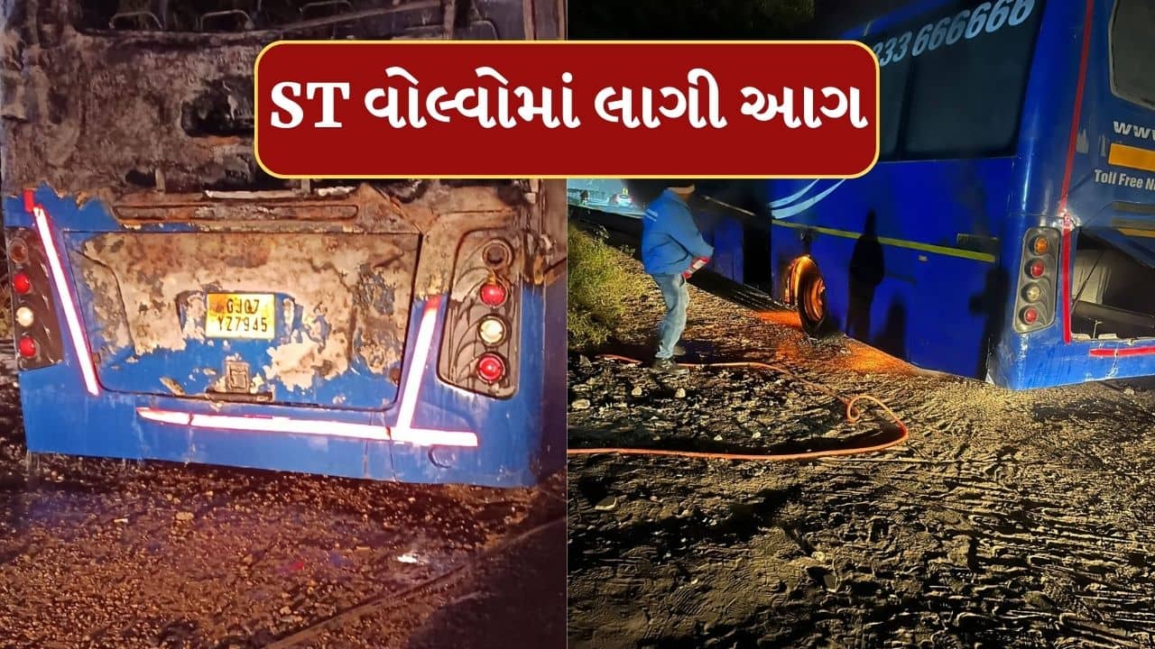 Ahmedabad : અમદાવાદ-મહેસાણા હાઈવે પર ST વોલ્વો બસમાં લાગી ભીષણ આગ, જુઓ Video