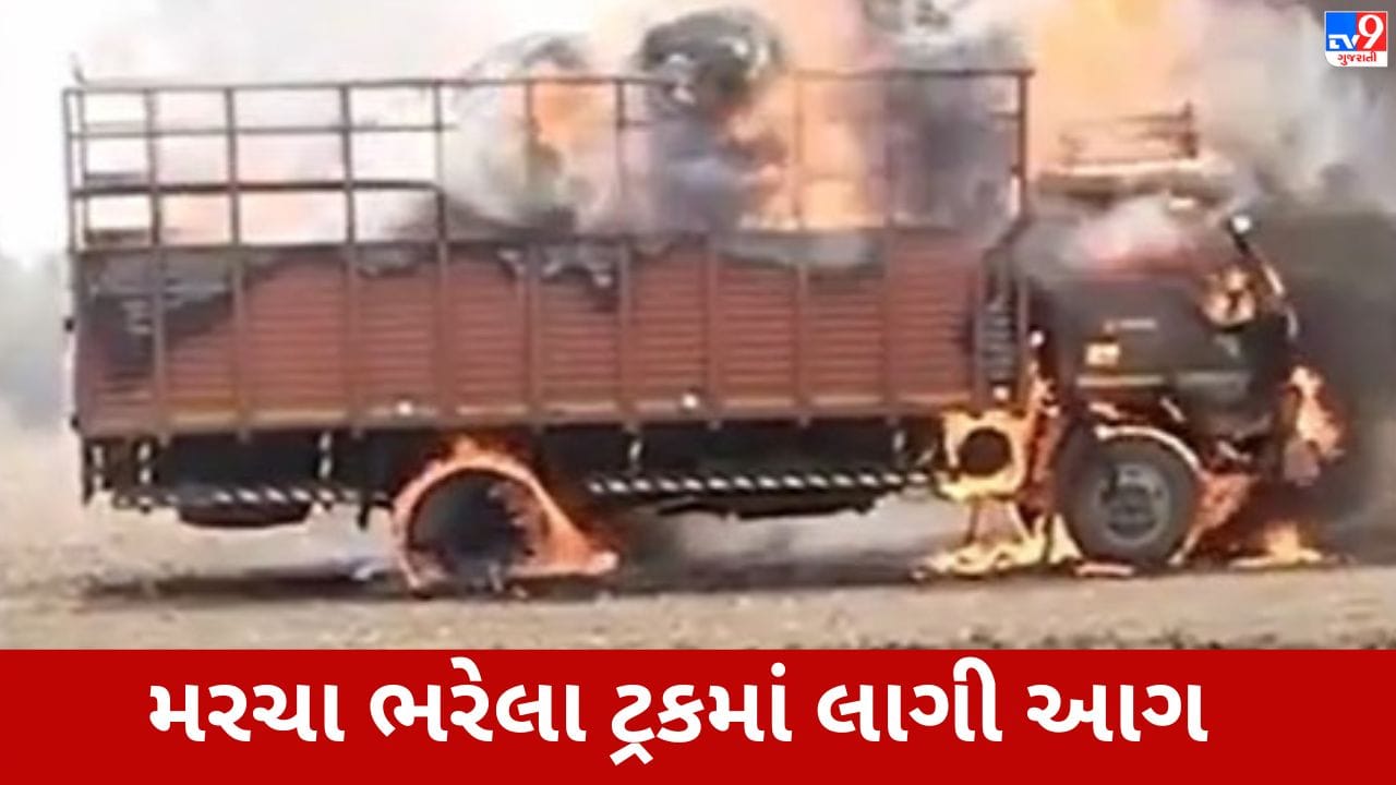 રાજકોટમાં ખેતર વચ્ચેના વીજ થાંભલામાં શોટસર્કિટ થતા મરચા ભરેલો ટ્રક ભડકે બળ્યો, જુઓ VIDEO