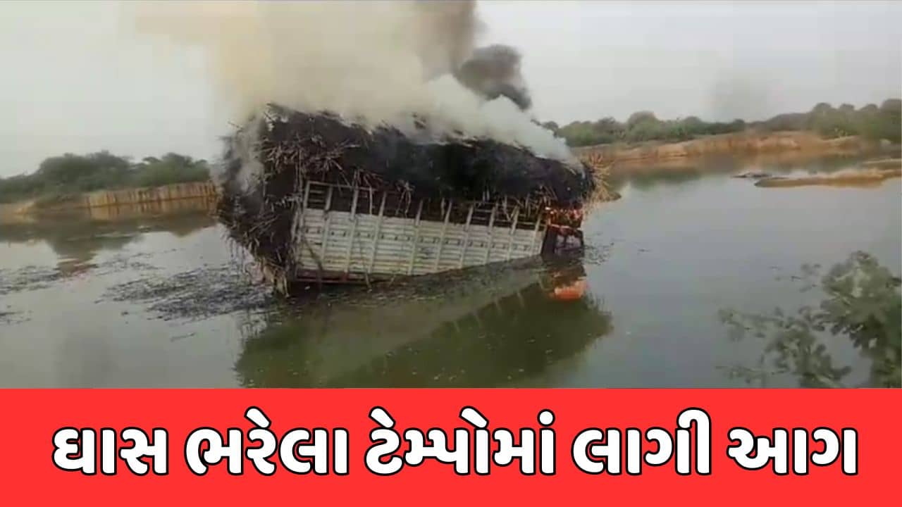 કચ્છના ભચાઉના લલીયાણા ગામે ઘાસનો જથ્થો ભરેલા ટેમ્પોમાં અચાનક આગ લાગી હોવાની ઘટના સામે આવી છે. વીજ વાયરને અડી જતા ઘાસ ભરેલો ટેમ્પો સળગવા લાગ્યો હતો. જો કે ડ્રાઈવરે સમય સૂચકતા વાપરીને ટેમ્પોને તળાવમાં ઉતારી દીધો હતો.