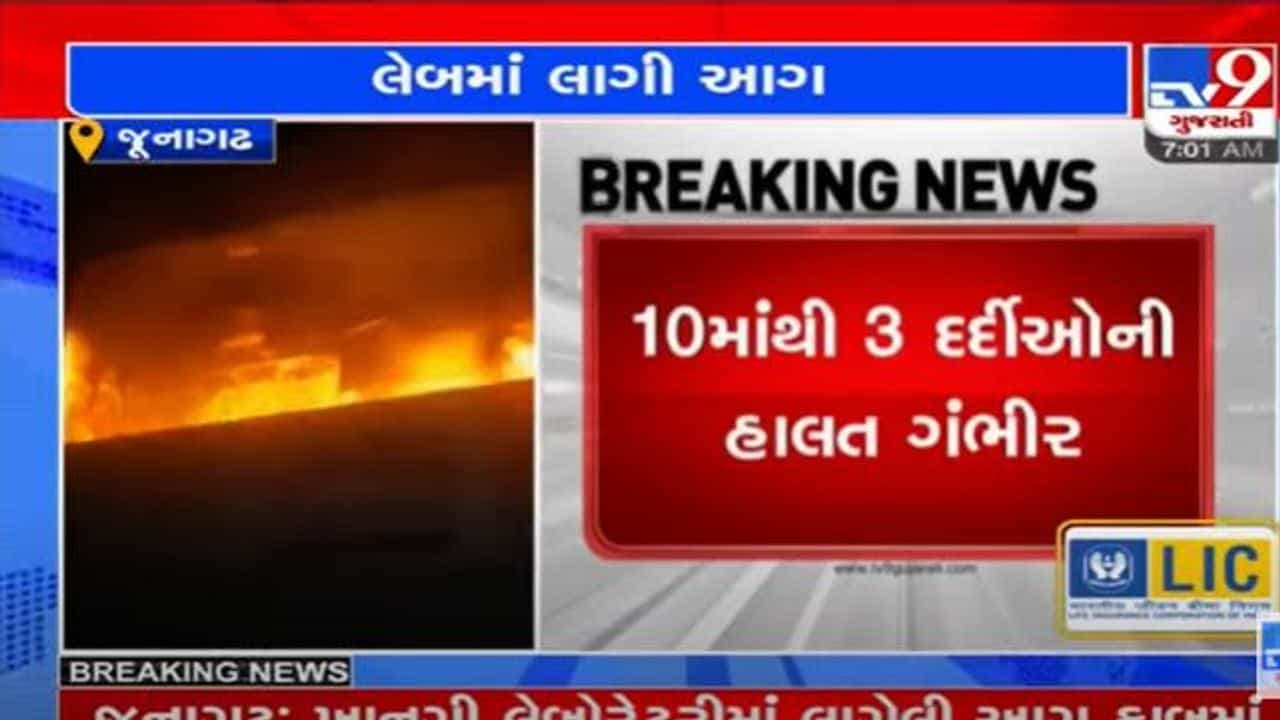 જૂનાગઢમાં આવેલા દ્વારકાધીશ માર્કેટમાં પહેલા માળે આવેલી SRL ખાનગી લેબોરેટરીમાં સવારે 4 વાગ્યાની આસપાસ આગ લાગી હતી. લેબની બાજુમાં જ કનેરિયા હોસ્પિટલ આવેલી છે. જેથી આગનો ધુમાડો કનેરિયા હોસ્પિટલમાં પહોંચી ગયો હતો. ધુમાડો મોટા પ્રમાણમાં હોસ્પિટલમાં પહોંચતા દર્દીઓને ગૂંગળામણ થવા લાગી હતી. જેના પગલે હોસ્પિટલમાં દાખલ 10 જેટલા દર્દીઓને બહાર કાઢી લેવાયા હતા. 10 દર્દીઓમાંથી 3 દર્દીઓની હાલત ગંભીર હોવાનું જાણવા મળ્યું છે. જોકે આગ લાગવાનું ચોક્કસ કારણ હજુ સુધી જાણી શકાયું નથી.