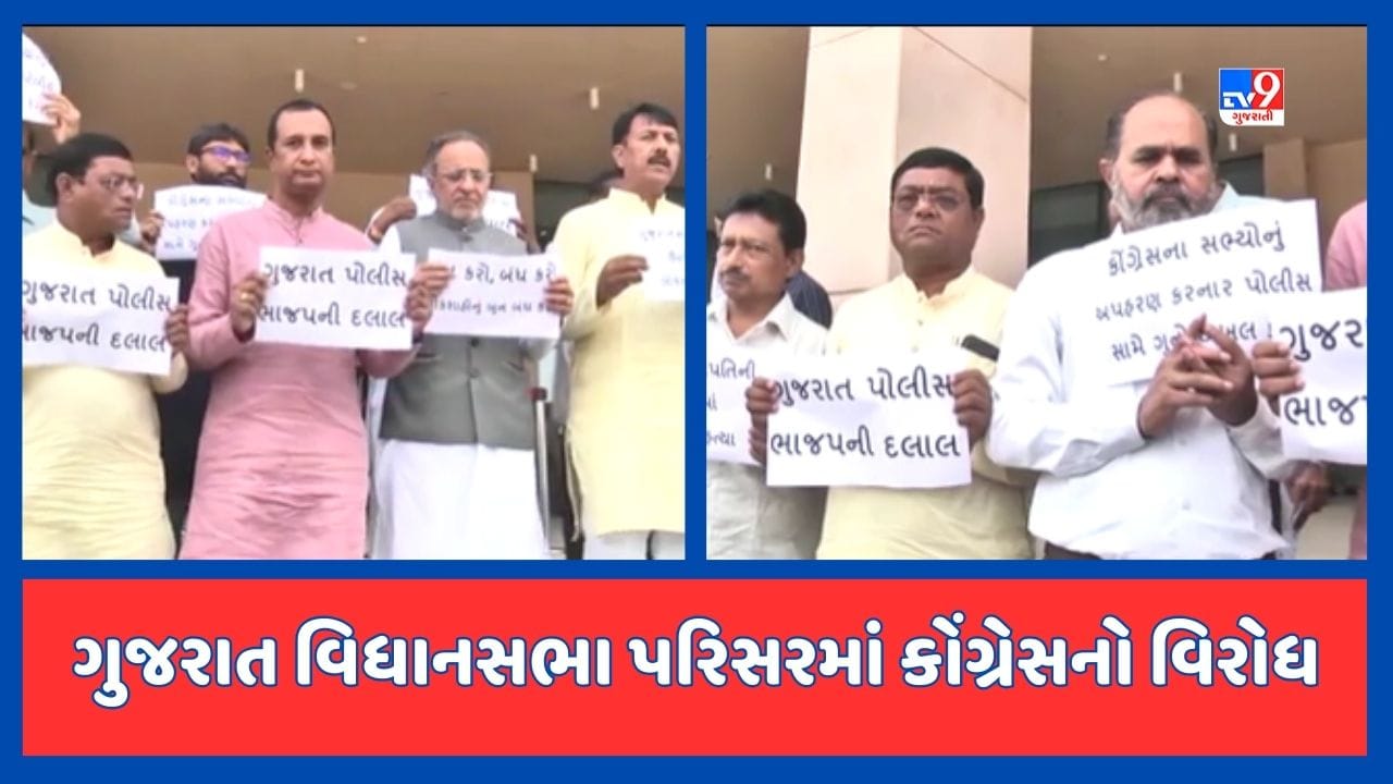 Gandhinagar: કલોલ તાલુકા પંચાયતના સભ્યો ગુમ થવા મુદ્દે કોંગ્રેસનું ગુજરાત વિધાનસભા પરિસરમાં વિરોધ પ્રદર્શન, જુઓ Video