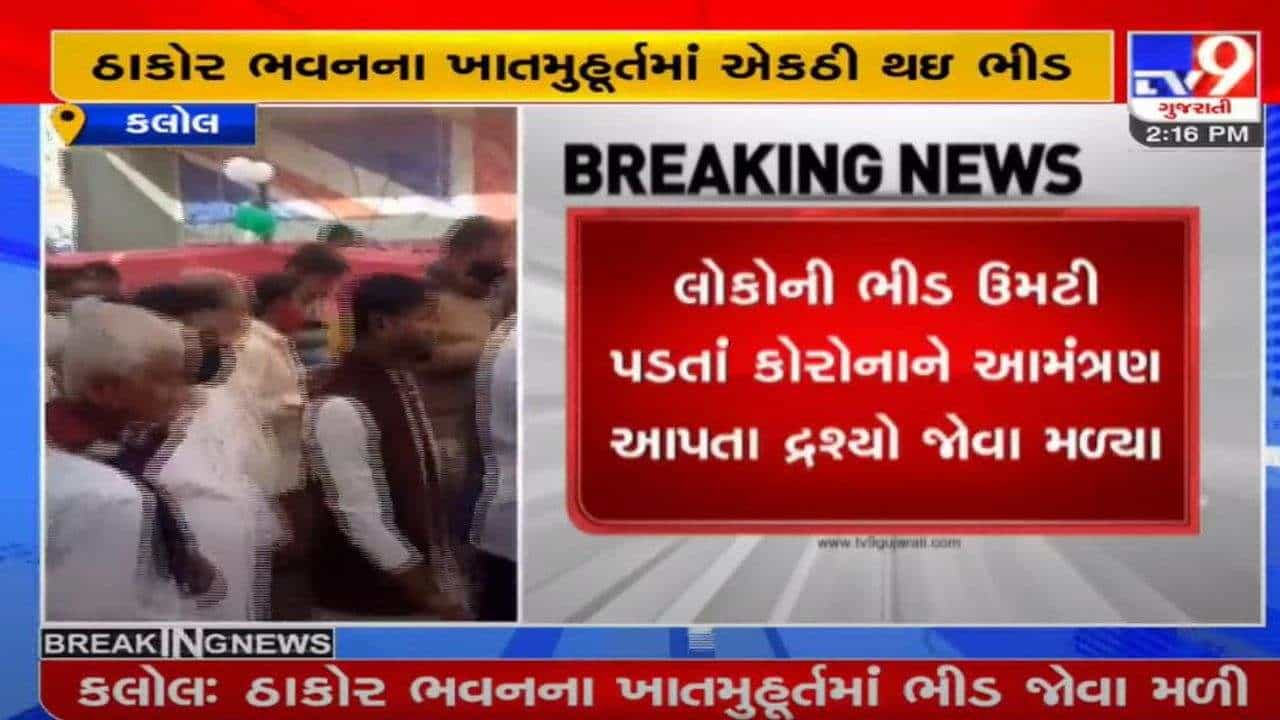 ગાંધીનગરના કલોલમાં એકઠી થઈ ભીડ. કલોલમાં (KALOL ) ઠાકોર ભવનના ખાતમુહૂર્તનો કાર્યક્રમ હતો. આ કાર્યક્રમ કૉંગ્રેસના પ્રદેશ પ્રમુખ (Congress Region President )જગદીશ ઠાકોરની (Jagdish Thakor) હાજરીમાં જ યોજાયો. જેમાં સરકારે નક્કી કરેલા (Corona) નિયમોથી વિપરીત દ્રશ્યો જોવા મળ્યા. રાજકીય અને સામાજિક કાર્યક્રમોમાં સરકારે 150 લોકોની જ મંજૂરી આપેલી છે. પરંતુ આ કાર્યક્રમમાં હજારો લોકો જોવા મળ્યા. નિયમોની ઐસીતૈસી થઈ ગઈ. નિયમો તોડીને પણ કૉંગ્રેસના પ્રદેશ પ્રમુખ શરમાવાની જગ્યાએ રાજ્ય સરકારને સલાહ આપતા જોવા મળ્યા.