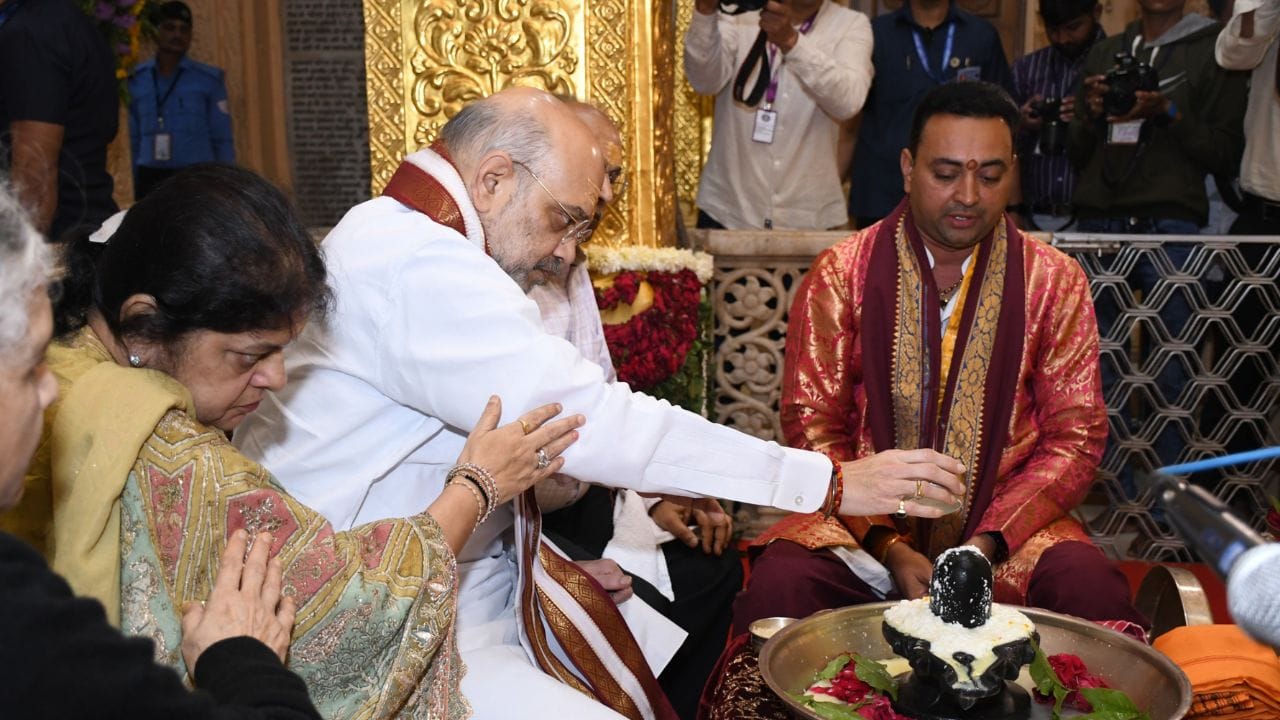 કેન્દ્રીય ગૃહ અને સહકારિતા મંત્રી અમિત શાહે 12 જ્યોતિર્લિંગ પૈકીના પ્રથમ જ્યોતિર્લિંગ એવા સોમનાથ મહાદેવના દર્શન કર્યા. અમિત શાહે સપરિવાર સોમનાથ મહાદેવની પૂજા અર્ચના કરી અને મહાદેવને જળાભિષેક કર્યો હતો. કેન્દ્રીય ગૃહ મંત્રી અમિત શાહ શુક્રવારના મોડી સાંજથી જ સોમનાથ પહોંચ્યા હતા. સવારે અમિત શાહ સોમનાથ મહાદેવના દર્શને પહોંચ્યા હતા અને સપરિવાર ભગવાન સોમેશ્વર પૂજા પાઘ પૂજા અને ધ્વજારોહણ કર્યુ હતુ. ભારત સંકલ્પ યાત્રામાં અંતર્ગત તેઓ ચાંડુવાવ ગામે પહોંચ્યા હતા. રાત્રિ રોકાણ સોમનાથમાં કરી તેઓ સોમનાથ મંદિરમાં પૂજામાં જોડાયા હતા. ત્યાથી તેઓ જુનાગઢ જવા રવાના થયા હતા.