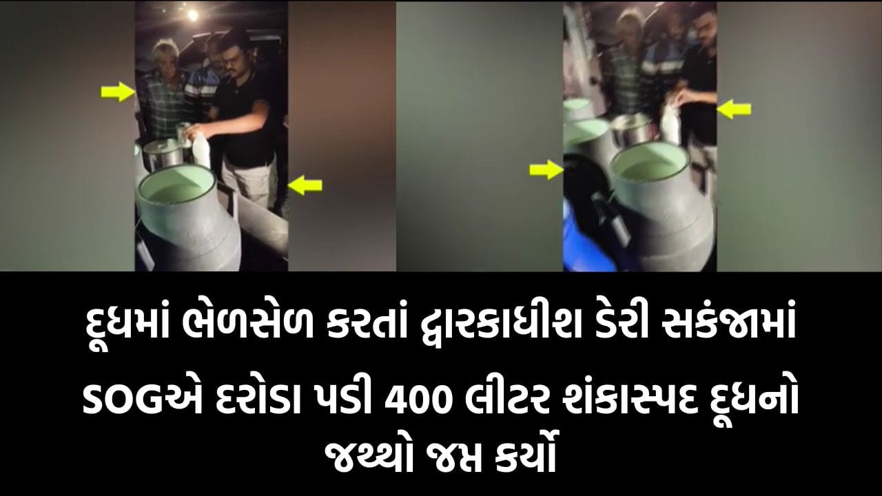 રાજકોટ ગ્રામ્ય SOGએ એક ગુપ્ત માહિતીના આધારે ધોરાજીના ઝાંઝમેર ગામે આવેલી ‘દ્વારકાધીશ ડેરી’ પર દરોડા પાડી ભેળસેળિયા દૂધના કૌભાંડનો પર્દાફાશ કર્યો છે. આરોગ્ય વિભાગની ટીમ સાથે રાખી પોલીસે 400 લીટર દૂધનો જથ્થો સીઝ કરી નમૂના પરીક્ષણ માટે લેબમાં મોકલ્યા છે.