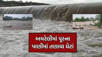 આ તરફ અમરેલીમાં ભારે વરસાદના કારણે પાણીના ધસમસતા પ્રવાહમાં 25 ઘેટાં તણાયા હતા. જાણે મેઘરાજા પહેલીવારમાં જ બધુ તાણી જવા આવ્યા હોય તેમ તેઓ વરસી રહ્યા છે. પાણીમાં જીવન મરણ વચ્ચે ઝોલા ખાતા ઘેટાંઓને સ્થાનિકોએ દ્વારા બચાવવાની કામગીરી હાથ ધરવામાં આવી હતી. જેમાં 10 ઘેટાનું રેસ્ક્યૂ કરવામાં આવ્યું છે. માલઘારી પરિવારના ઘેટાં નદીમાં તણાતા પરિવારમાં ભારે ચિંતાનો માહોલ છે. સાથે જ અમરેલીની જોલાપુરી નદીમાં પણ પૂરની સ્થિતિ ઉભી થઈ છે.