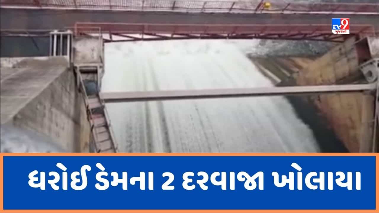 Mehsana video : ધરોઇ ડેમના 2 દરવાજા ખોલાયા, સાબરમતી નદીના કાંઠા વિસ્તારને એલર્ટ કરાયા