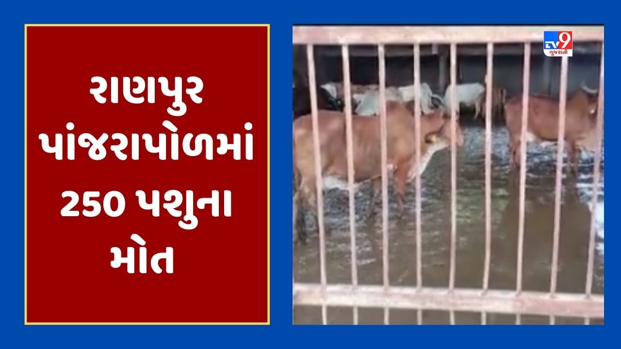 બોટાદના (Botad) રાણપુરમાં પણ વરસાદ (Rain) બાદ સર્જાયેલી સ્થિતિના પગલે પાંજરાપોળના પશુઓના મોત થયા છે. બોટાદના રાણપુરમાં પાંજરાપોળમાં 250 પશુના મોત થયા છે.