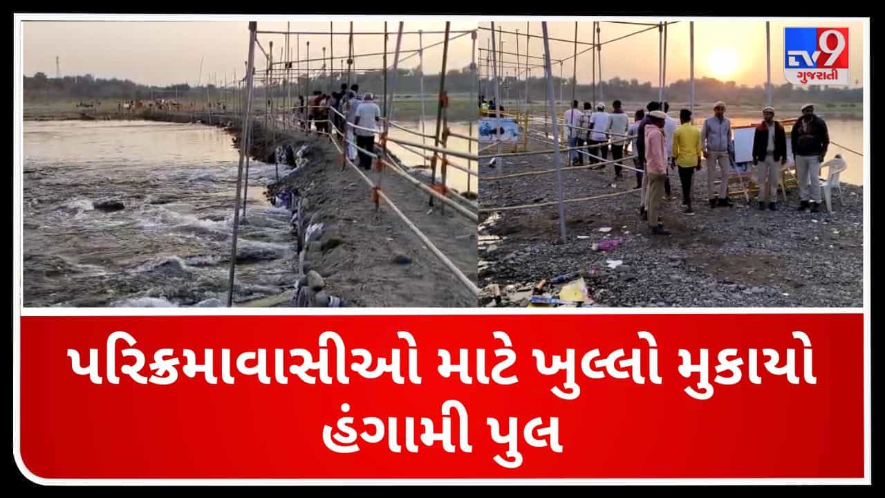 નર્મદા નદીની ઉત્તરવાહિની પરિક્રમા કરવામાં હવે લોકોને કોઈ મુશ્કેલી નહીં પડે. ગઈકાલે (10.04.23) TV9 ગુજરાતીએ અહેવાલ પ્રસારિત કર્યા બાદ તંત્ર સફાળુ જાગ્યુ છે અને શહેરાવથી તિલકવાડા જવાના હંગામી પૂલને ખુલ્લો મુખ્યો છે. TV9 ગુજરાતી પર અહેવાલ પ્રસારિત કરીને સવાલ ઉઠાવ્યો હતો કે- પૂલનું નિર્માણ થઈ ચૂક્યું છે છતાંતંત્ર શા માટે લોકોને મંજૂરી નથી આપતું? આ અહેવાલ પ્રસારિત થયાના ગણતરીના કલાકોમાં જ પુલને પરિક્રમાવાસીઓ માટે ખુલ્લો મૂકવામાં આવ્યો છે. પરિક્રમા કરનારાઓએ હવે નાવડીની રાહ નહીં જોવી પડે. તેઓ પૂલ ઉપરથી જ નદી પાર કરી શકશે. મહત્વનું છે કે ઉત્તરવાહિની પરિક્રમાને હવે ફક્ત 9 દિવસ બાકી છે.