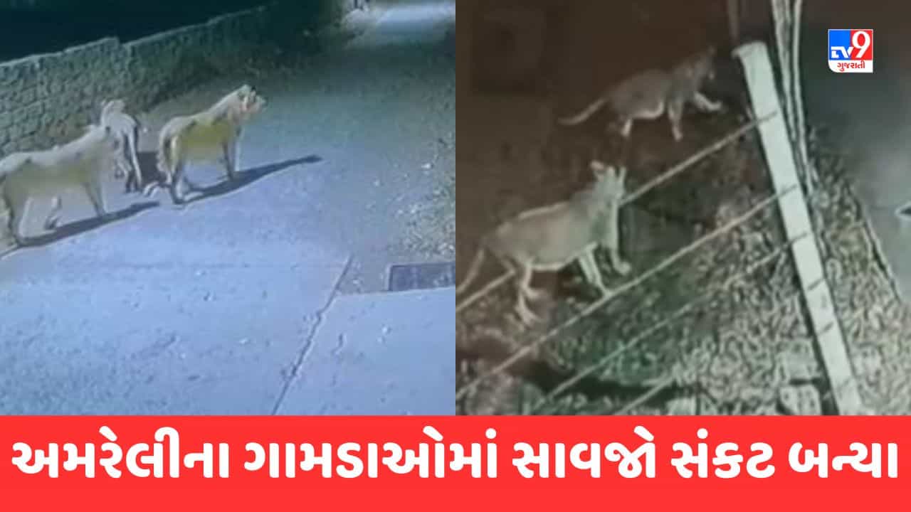 Gujarati Video : અમરેલીના ગામડાઓમાં સાવજો સંકટ બન્યા, ગામ લોકોમાં ફફડાટ ફેલાયો