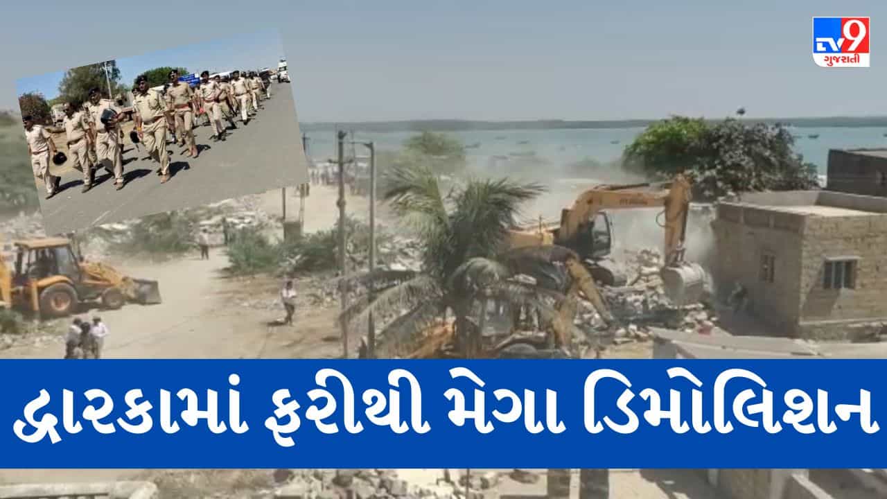 Gujarati Video: દેવભૂમિ દ્વારકા જિલ્લામાં ગેરકાયદે બાંધકામ પર ફરી વળ્યું બુલડોઝર, પોલીસ કાફલો ખડેપગે, જુઓ Video