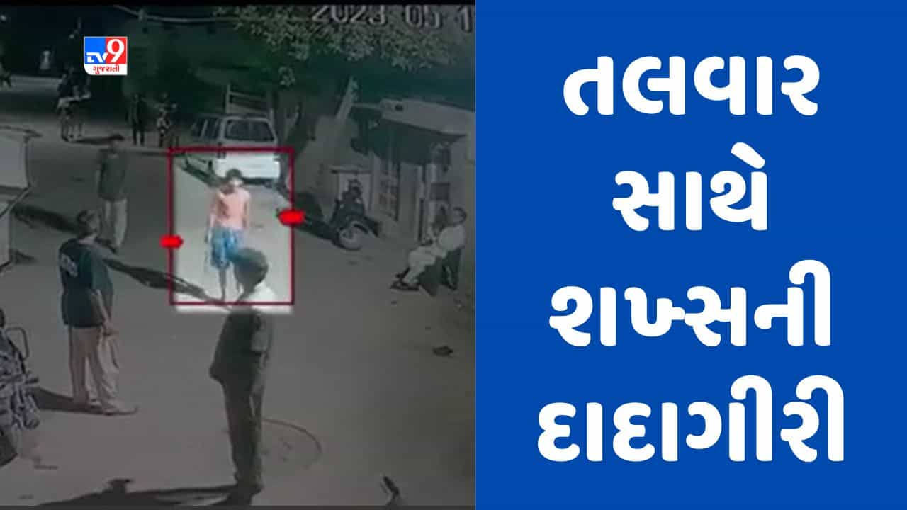 Gujarati Video : રાજકોટના ગોંડલમાં જાહેરમાં તલવાર બતાવીને રોફ જમાવતા યુવકના CCTV સામે આવ્યા