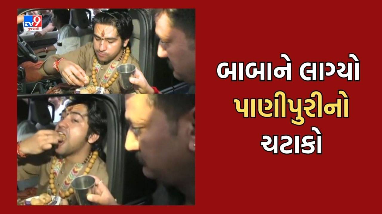 Gujarati Video: બાગેશ્વરધામના પીઠાધીશ ધીરેન્દ્ર શાસ્ત્રીએ કાફલો રોકાવી માણી પાણીપુરીની મજા