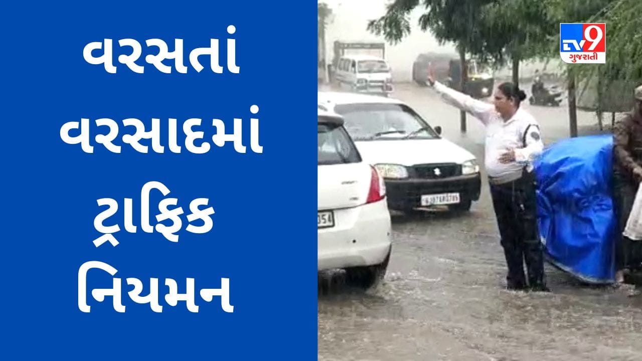 Gujarati Video : મેઘરાજાના આકરા મિજાજ વચ્ચે પણ પોલીસકર્મીઓએ ખડેપગે ફરજ નિભાવી, ભારે વરસાદમાં ટ્રાફિક નિયમન કરતા નજરે પડયા