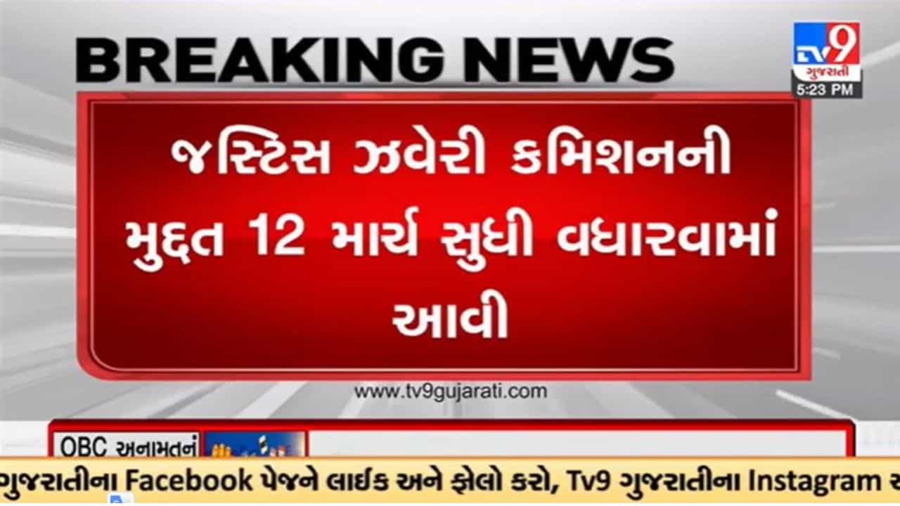 ગુજરાતમાં સ્થાનિક સ્વરાજ્યની ચૂંટણીમાં OBC અનામત નક્કી કરવા માટે રચાયેલ જસ્ટિસ ઝવેરી કમિશનની મુદ્દતમા ફરી વધારો કરાયો છે. કમિશનની મુદ્દત 12 માર્ચ સુધી વધારાઈ છે. આ અગાઉ 90 દિવસમાં રિપોર્ટ આપવાનું કહેવાયું હતું..જેને હવે વધારીને 12 માર્ચ સુધીની મુદ્દત કરાઈ છે.સ્થાનીક સ્વરાજ્યની સંસ્થાઓમાં OBC અનામત નક્કી કરવા કમિશનની રચાઈ કરાઈ છે. સ્વતંત્ર પંચની રચના કરવા સુપ્રીમ કોર્ટે આદેશ આપ્યા હતા.ગુજરાત હાઈકોર્ટના નિવૃત ન્યાયાધિશ કે.એસ.ઝવેરીની અધ્યક્ષતામાં પંચની રચના કરાઈ છે.