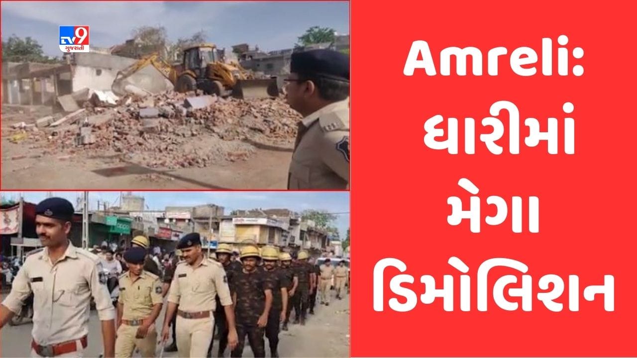 Gujarati Video: અમરેલીના ધારીમાં આજે મેગા ડિમોલીશન, 700 ગેરકાયદે દબાણો હટાવાશે, ડિમોલીશન પહેલા પોલીસે કર્યુ ફ્લેગમાર્ચ