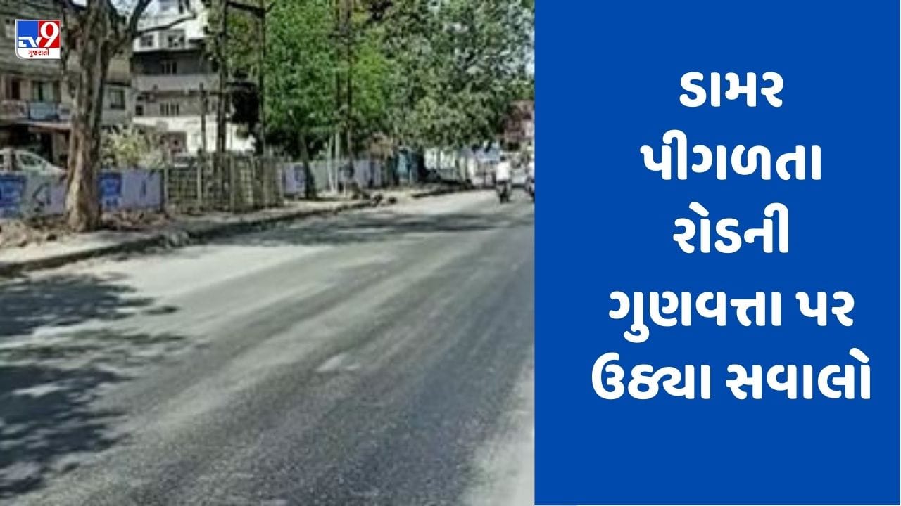 Gujarati Video: નવસારીમાં ગરમીનો પારો વધતા નવો બનેલો રોડ પીગળ્યો, જુઓ Video