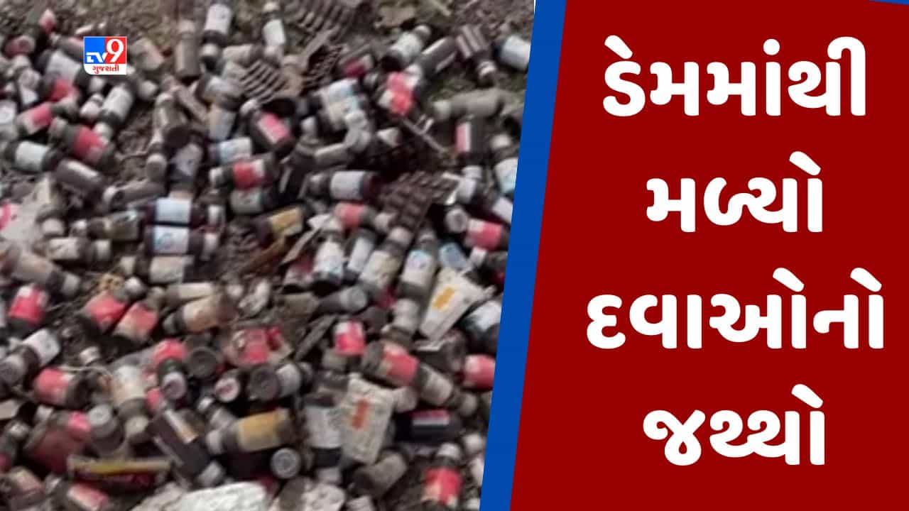 Junagadh News : ડેમના પાણી ઓસર્યા બાદ મોટાપાયે દવાઓનો જથ્થો જોવા મળ્યો છે. કોરોનાની રસી, સિરપની બોટલો અને ગોળીઓનો જથ્થો ફેંકી દેવાયેલી હાલતમાં મળ્યો છે.
