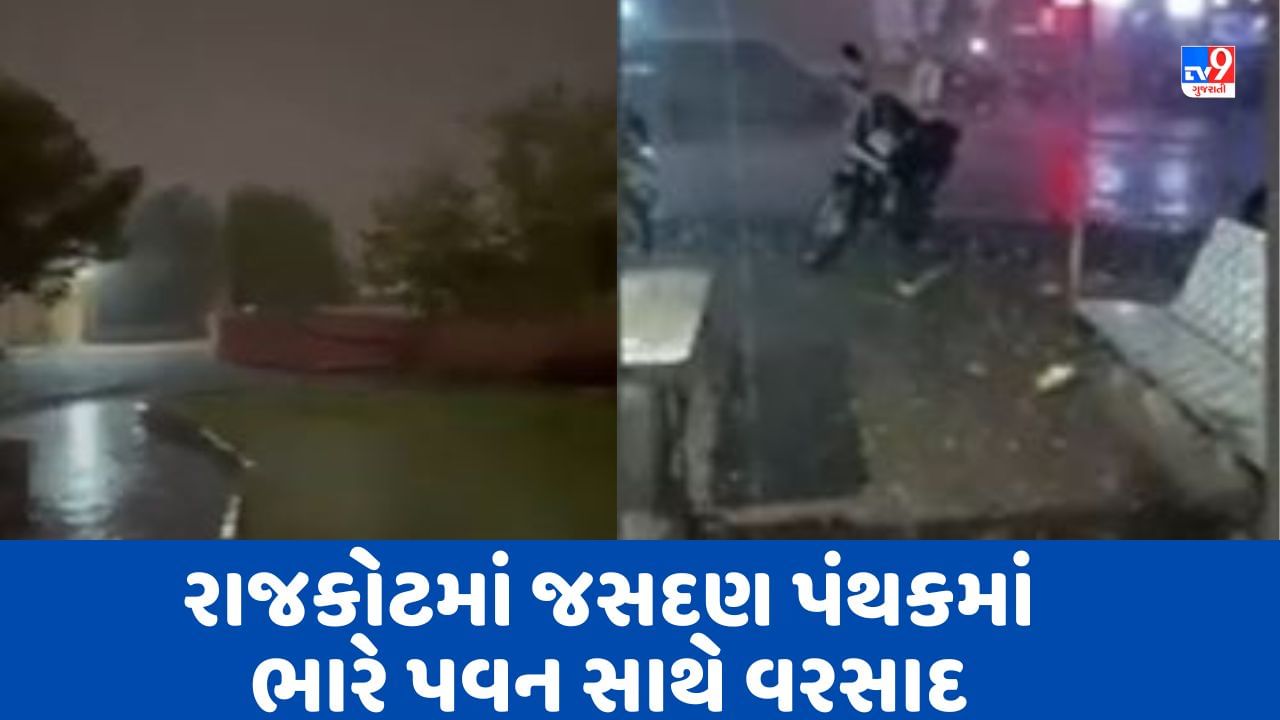 Gujarati Video: રાજકોટમાં જસદણ પંથકમાં ભારે પવન સાથે વરસાદ પડ્યો, અનેક વિસ્તારમાં કરા સાથે ભારે વરસાદ
