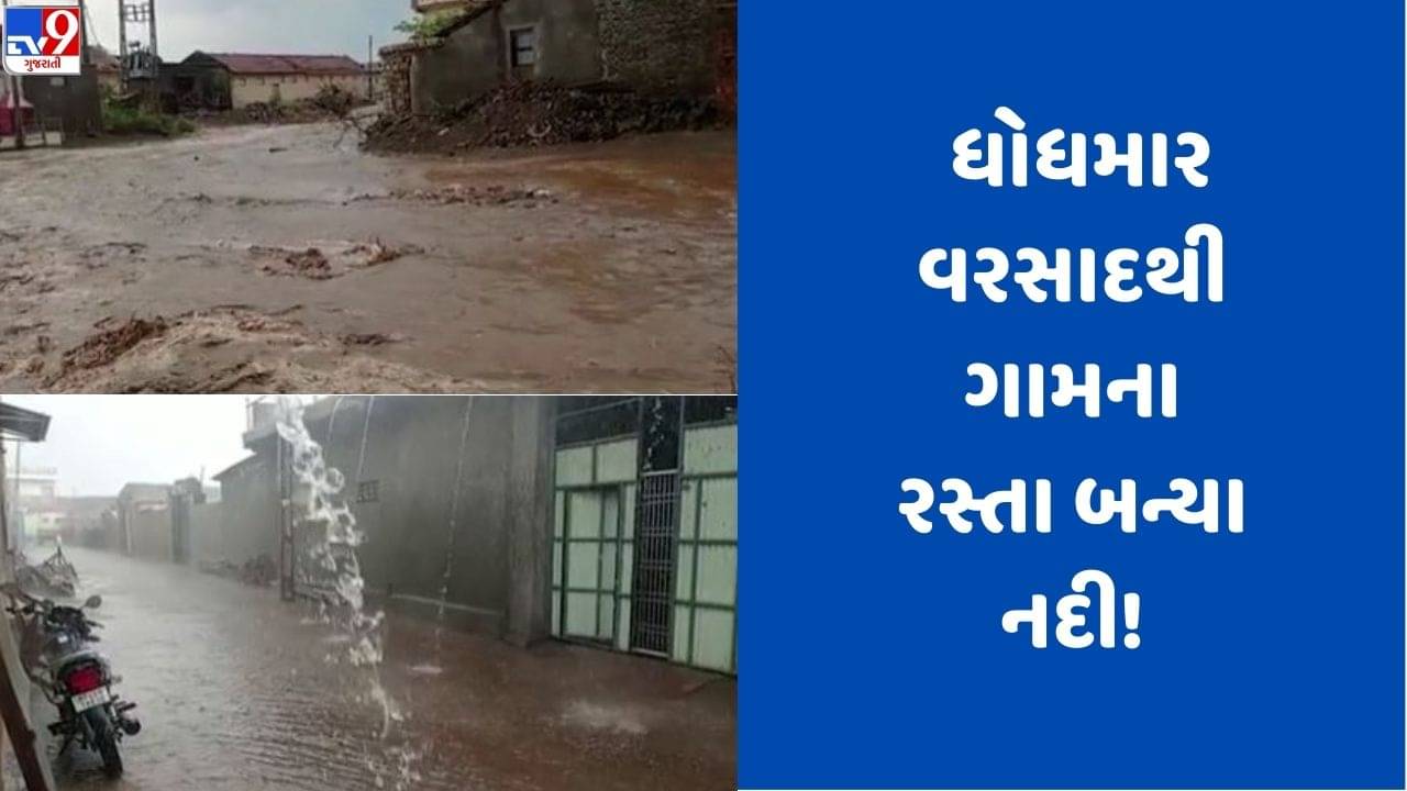 Gujarati video: અમરેલીના ખાંભામાં ભરઉનાળે જામ્યું ચોમાસું, ગામના રસ્તા બન્યા નદી