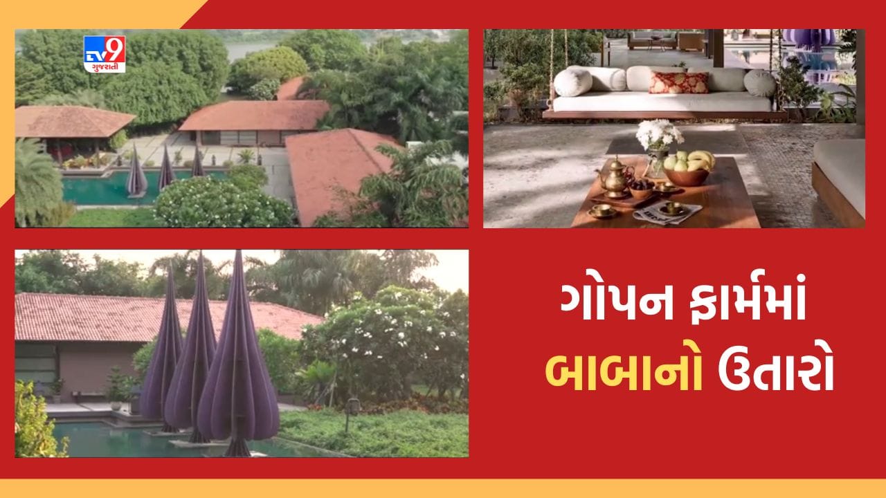 Surat: હાલ ગુજરાતમાં ચૌરે ને ચોકે એક જ વાતની ચર્ચાય છે અને એ છે બાબા ધીરેન્દ્ર શાસ્ત્રી. હાલ બાગેશ્વર ધામના પીઠાધીશ ધીરેન્દ્ર શાસ્ત્રી ગુજરાતના પ્રવાસે છે. બે દિવસ સુરતમાં તેમનો દિવ્ય દરબાર યોજાયો છે. ત્યારે બાબાના આગમનને લઈને જેટલી ચર્ચા છે એટલી જ ચર્ચા સુરતમાં બાબા માટે રહેવાની જ્યાં વ્યવસ્થા કરાઈ છે તે ઉતારાના સ્થળની પણ છે. કોઈ રિસોર્ટ કે ફાઈવ સ્ટાર હોટેલને પણ ઝાંખી પાડે તે પ્રકારની વ્યવસ્થા અને અદ્યતન સુવિધાથી સજ્જ છે બાબાના ઉતારાનું સ્થળ ગોપન ફાર્મ.