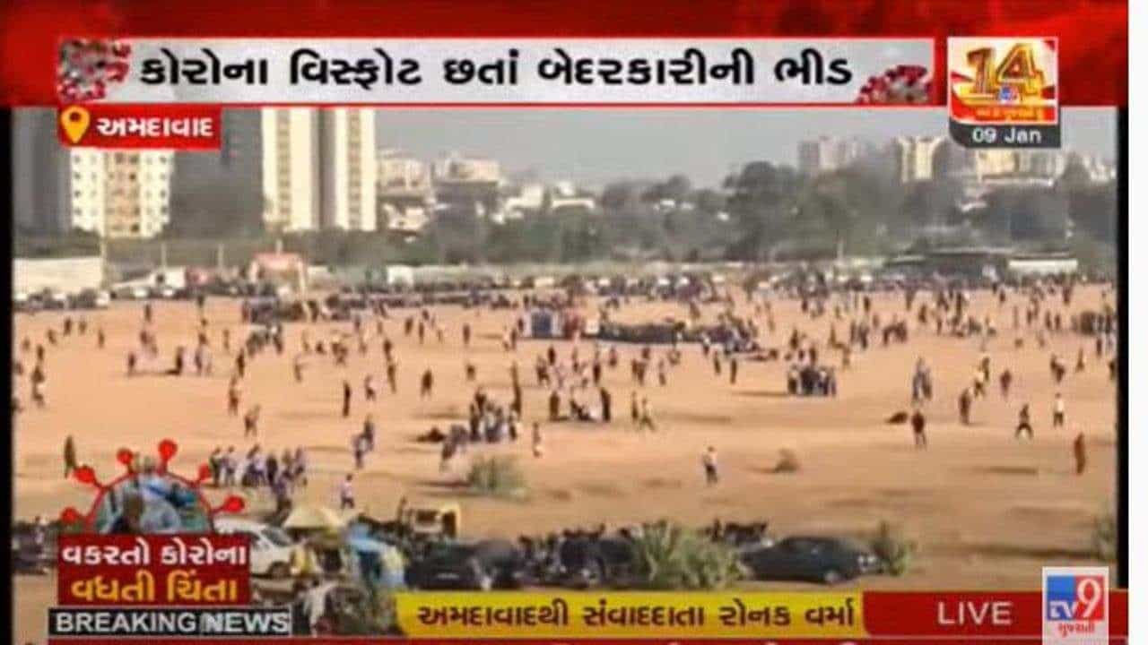 બીજી તરફ આવા દ્રશ્યો ચિંતાજનક છે. કોરોનાને ખુલ્લુ આમંત્રણ આપતા હોય તેવા દ્રશ્યો GMDC ગ્રાઉન્ડમાં જોવા મળ્યા. આ ગ્રાઉન્ડથી પોલીસ સ્ટેશન પણ ખૂબ જ નજીકમાં છે. આમ છતાં પોલીસ જાણે આંખ આડા કાન કરી રહી હોય તેવી સ્થિતિ જોવા મળી છે.