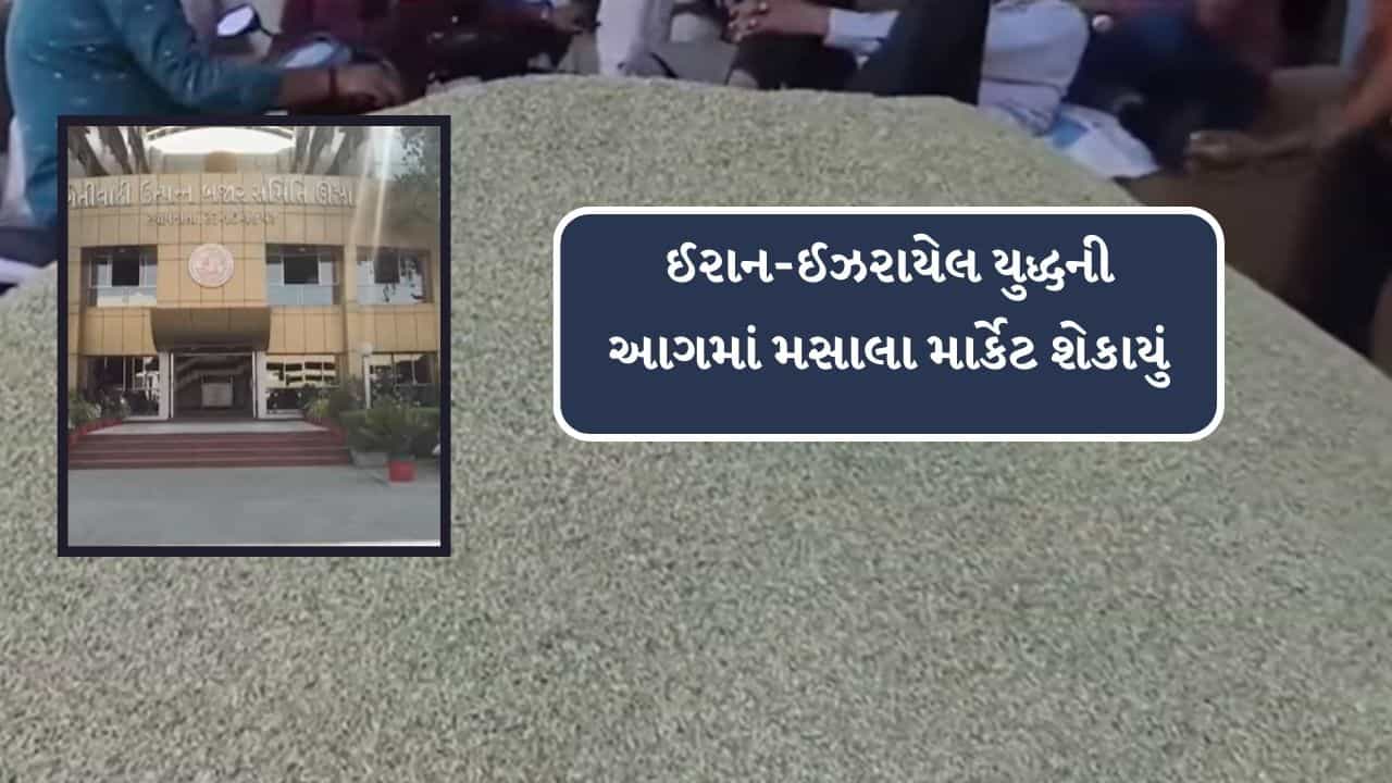 મધ્ય પૂર્વના યુદ્ધની અસર ઊંઝા APMCના વેપાર ઉપર જોવા મળી છે. ઈરાન-ઈઝરાયેલ યુદ્ધની આગમાં મસાલા માર્કેટ શેકાયું છે અને ઊંઝામાં જીરા, વરિયાળી અને ઈસબગુલના ભાવમાં મોટો કડાકો બોલ્યો છે. એશિયાના સૌથી મોટા મસાલા માર્કેટ તરીકે ઓળખાતું ઊંઝા APMC હાલ ચિંતામાં છે. નિકાસ અટકી છે, કન્ટેનરના ભાડા વધ્યા છે અને ખેડૂતો તેમજ વેપારીઓના જીવ અધ્ધર થઈ ગયા છે.