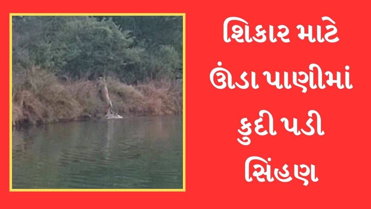 બકરીના શિકાર માટે 15 ફૂટ ઊંડા પાણીમાં કુદી પડી સિંહણ, જુઓ આ શાનદાર Video
