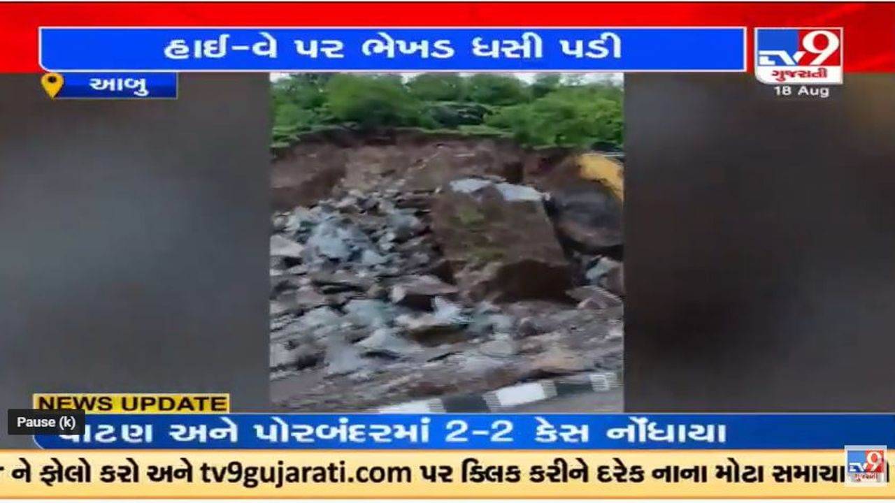 ગુજરાત (Gujarat)  અને રાજસ્થાનમાં સતત વરસી રહેલા વરસાદના(Rain)  પગલે અનેક હાઇવો પર પાણી ભરાયા છે. તેમજ અનેક સ્થળોએ રસ્તાઓ પણ ધોવાયા છે. જયારે આબુ-અંબાજી (Abu Ambaji Highway) હાઈ વેની સાઈડ પરની ભેખડ ધસી પડતા ટ્રાફિક જામ સર્જાયો હતો. જેમાં ભેખડનો કાટમાળ રસ્તા પર આવી જતા એક તરફનો રસ્તો સંપૂર્ણ બ્લોક થયો હતો. જેના પરિણામે ટ્રાફિક સર્જાયો હતો અને વાહનોની લાંબી કતાર લાગી હતી.