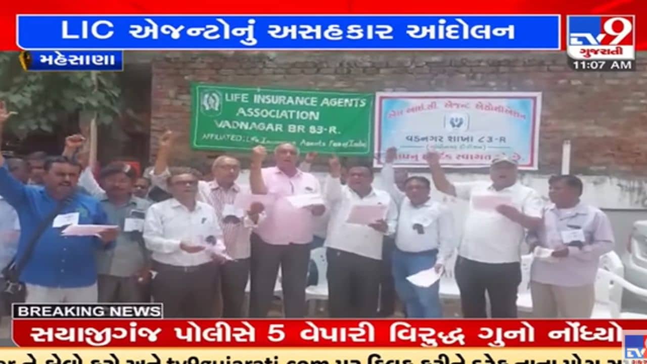 મહેસાણા જિલ્લાના વડનગરમાં LIC એજન્ટો અસહકાર આંદોલન પર ઉતર્યા છે. મા પોલિસીમાં GST સહિતની પડતર માંગણીઓ ઉકેલવાની માગ સાથે એક દિવસ કામથી અળગા રહીને વિરોધ નોંધાવ્યો હતો.
