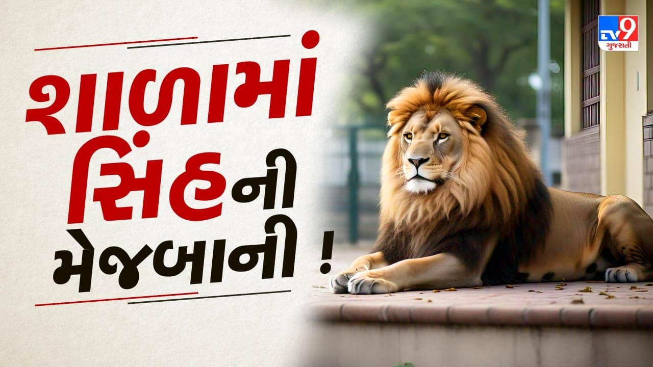 શાળામાં ઘૂસ્યો સિંહ ! શાળાએ આવતા બાળકોને શિક્ષકોએ બહાર જ રોક્યા, જુઓ Video