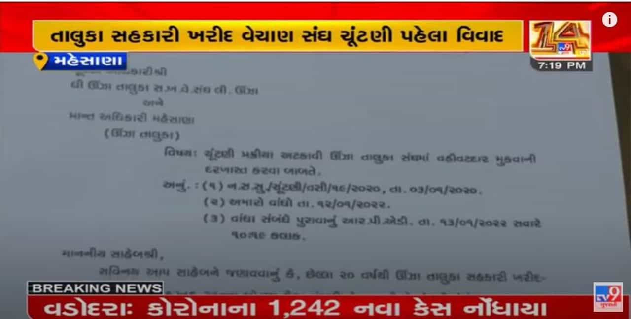Mehsana: સહકારી ખરીદ વેચાણ સંઘની ચૂંટણીની કામગીરી અટકી, ભાજપના જ જુથે મંડળી બોગસ હોવાનો આરોપ લગાવ્યો