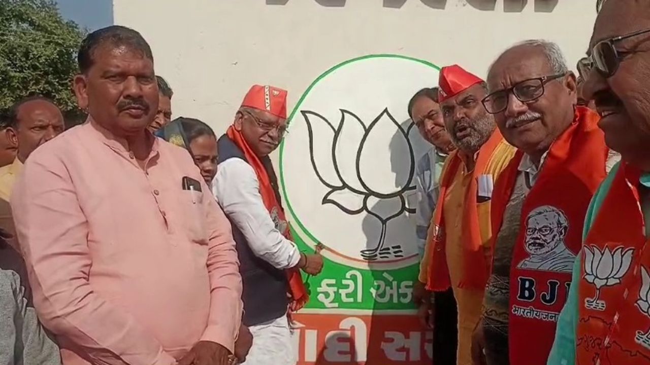 અરવલ્લીમાં નાગરિક પૂરવઠા પ્રધાને કમળ વોલ પેઈન્ટિંગ વડે ભાજપનો ચૂંટણી પ્રચારનો પ્રારંભ કરાવ્યો