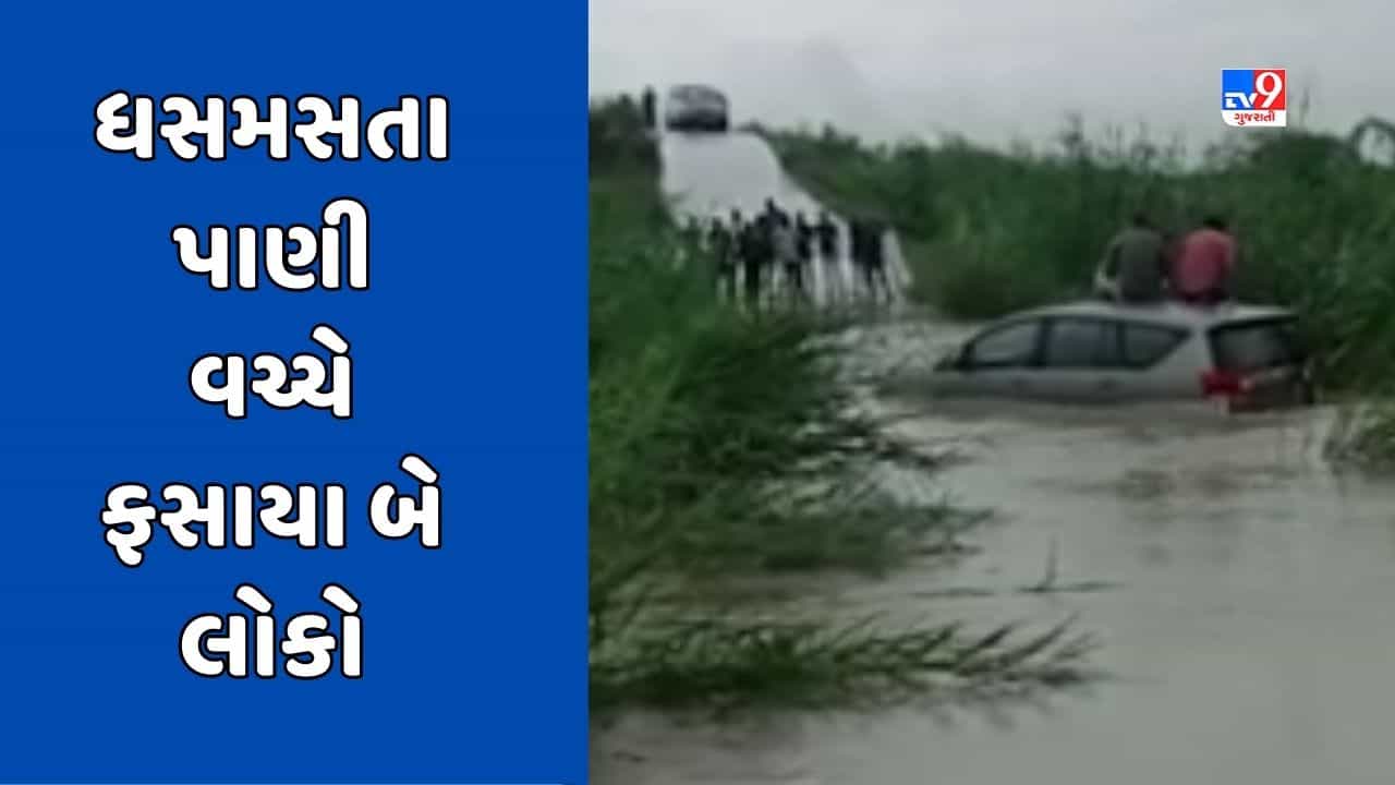 ધસમસતા પાણીના પ્રવાહ વચ્ચે બે લોકો તણાતા જીવ પડીકે બંધાયા હતા. જો કે પોતાનો જીવ બચાવવા બે લોકો કાર પર ચઢી ગયા હતા. બનાવની જાણ થતાં જ ફાયર વિભાગની ટીમ ઘટના સ્થળે પહોંચી હતી અને પાણીના ધસમસતા પ્રવાહ વચ્ચે ફસાયેલા બંને લોકોનું સલામત રેસ્ક્યૂ કરવામાં આવ્યું છે.