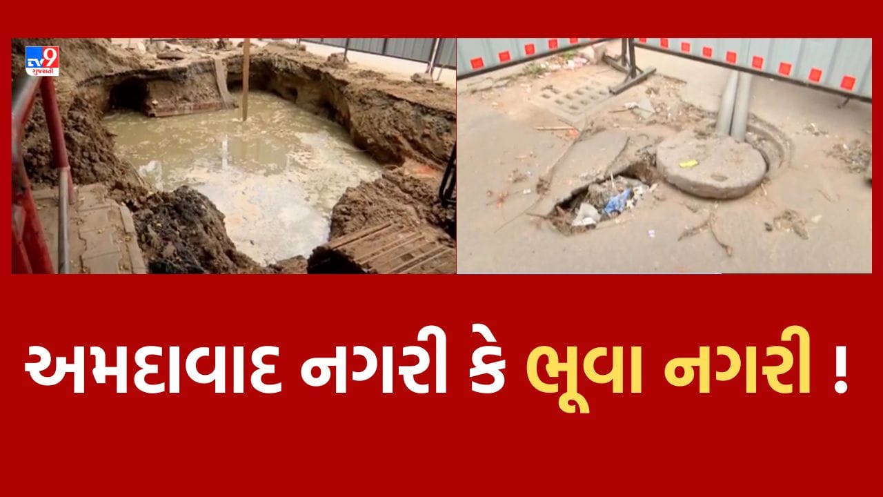 Monsoon 2023 : અમદાવાદના જુહાપુરા વિસ્તારમાં પડ્યો ભૂવો, AMCની પ્રિ-મોન્સૂન કામગીરીની ખોલી પોલ, જુઓ Video