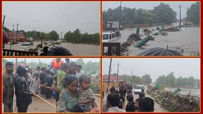 કથાકાર મોરારી બાપુના ગામ એવા તલગાજરડામાં બેર મેઘ ખાંગા જેવી સ્થિતિ નિર્માણ પામી છે. ગામમાં એકસામટો 9 ઈંચ વરસાદ ખાબકી જતા બેટમાં ફેરવાઈ ગયુ છે. ગામમાં જ્યાં જુઓ ત્યા સ્થળ ત્યાં જળની સ્થિતિ જોવા મળી રહી છે. ગામની અંદર પાંચથી 6 ફુટ જેટલા પાણી ભરાયા છે. પૂરના આ પાણીમાં ગામની પ્રાથમિક શાળાના 40 થી 50 બાળકો કલાકો સુધી ફસાયા હતા. આ બાળકોને હાલ ભારે જહેમત બાદ રેસક્યુ કરવામાં આવ્યા છે. ફાયર બ્રિગેડની ટીમે તમામ વિદ્યાર્થીઓના રેસક્યુની કામગીરી હાથ ધરી હતી. ભારે વરસાદને પગલે તંત્ર પણ સતત ગામ પર નજર રાખી રહ્યુ છે. SDM, મામલતદાર સહિતના અધિકારીઓ ઘટનાસ્થળે પહોંચ્યા છે. ધોધમાર વરસાદને કારણે જનજીવન પ્રભાવિત થયુ છે. ગામ બેટમાં ફેરવાતા સંપર્ક વિહોણુ બન્યુ છે.