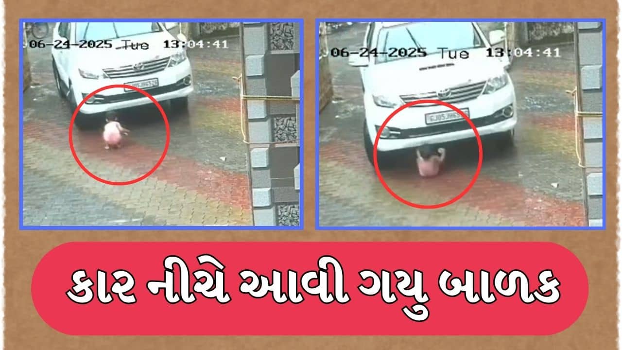 ગુજરાતના નવસારી જિલ્લામાં એક આશ્ચર્યજનક અને દિલ ધ્રૂજાવનારી ઘટના સામે આવી છે. 3 વર્ષનું એક નાનું બાળક રમતા રમતા SUV કારની નીચે આવી ગયું, પરંતુ પરિવારની સતર્કતાના કારણે બાળકને સહિસલામત બચાવી લેવામાં આવ્યું. આ ઘટનાનો સીસીટીવી વીડિયો પણ સામે આવ્યો છે, જેમાં સમગ્ર ઘટના સ્પષ્ટ રીતે જોવામાં આવી રહી છે.