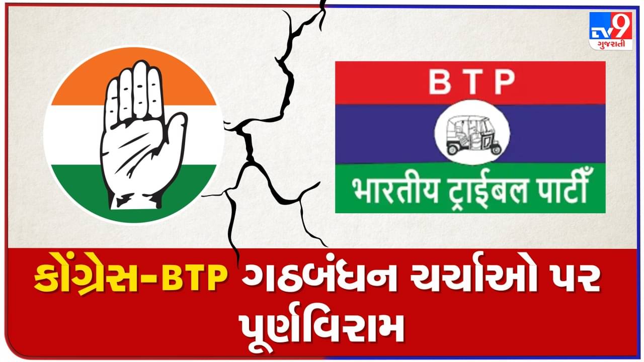 કોંગ્રેસ બીટીપીના ગઠબંધનનો અંત આવી ગયો છે. કોંગ્રેસ મોડી રાત્રે યાદી જાહેર કરતા જ કેટલીક અટકળોનો અંત આવ્યો હતો. જેમ કે ધોરાજીથી લલિત વસોયા ભાજપ જોડાશે. તેવી ચર્ચા ઘણા સમયથી ચાલતી હતી, પરંતુ કોંગ્રેસ તેમનું જાહેર કરતા આ અટકળો ઉપર પૂર્ણ વિરામ લાગી ગયું હતુ. તો બીજી તરફ કોંગ્રેસ-બીટીપી ગઠબંધન ચર્ચા પર પૂર્ણવિરામ મૂકાયું છે. કોંગ્રેસે ડેડીયાપાડા બેઠક પર જેરમાબેન વસાવા અને અને ઝઘડીયા બેઠક પરથી ફતેહસિંહ વસાવાને ઉેદવાર જાહેર કરીને કોંગ્રેસ બીટીપીના ગઢબંધનની અટકળો બંધ કરી દીધી હતી. નોંધનીય છે કે વર્ષ 2017ની ચૂંટણીમાં કોગ્રેસ અને બીટીપીનું ગઠબંધન થયું હતું.