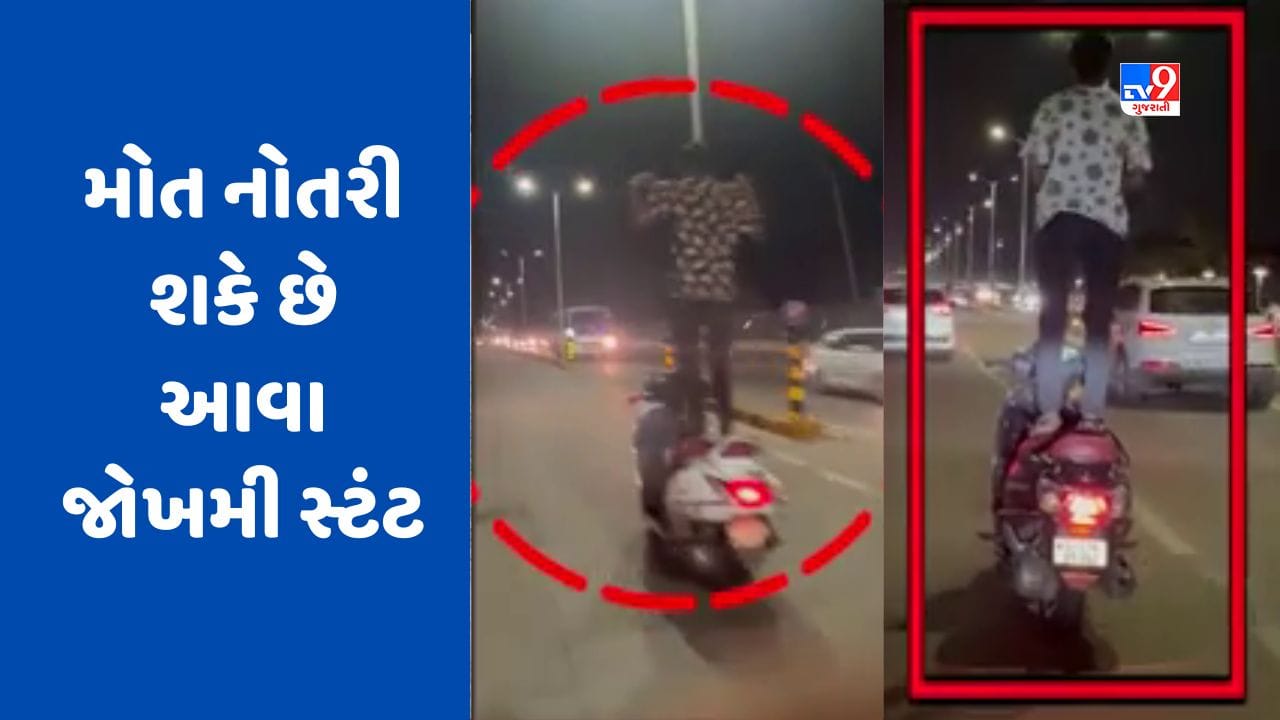 અમદાવાદમાં વારંવાર જોખમી સ્ટંટ કરતા વીડિયો વાયરલ થતા હોય છે, ત્યારે વધુ એક જોખમી સ્ટંટનો વીડિયો વાયરલ થયો છે. વાયરલ વીડિયો અમદાવાદના સિંધુ ભવન રોડનો છે.