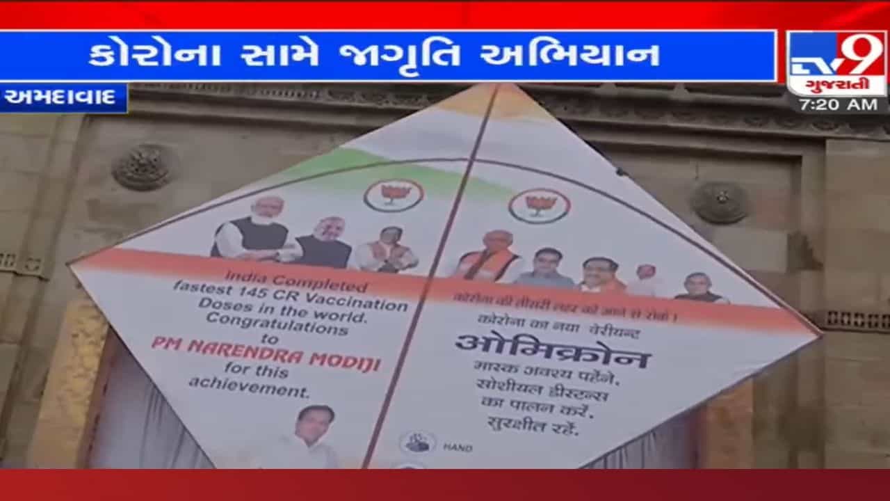 Ahmedabad: જમાલપુરના રઉફ બંગાળી દ્વારા ખુબ વિશાળ પતંગ બનાવાયો છે. જેમાં PM ની તસ્વીર સાથે કોરોનાને ધ્યાનમાં રાખીને સંદેશ લખવામાં આવ્યા છે.